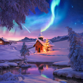 Colorful Winter Wonderland Oil Painting Wall Art | Northern Lights Landscape Decor | Panoramic Poster Colorful Winter Wonderland Oil Painting Wall Art | Northern Lights Landscape Decor | Panoramic Poster