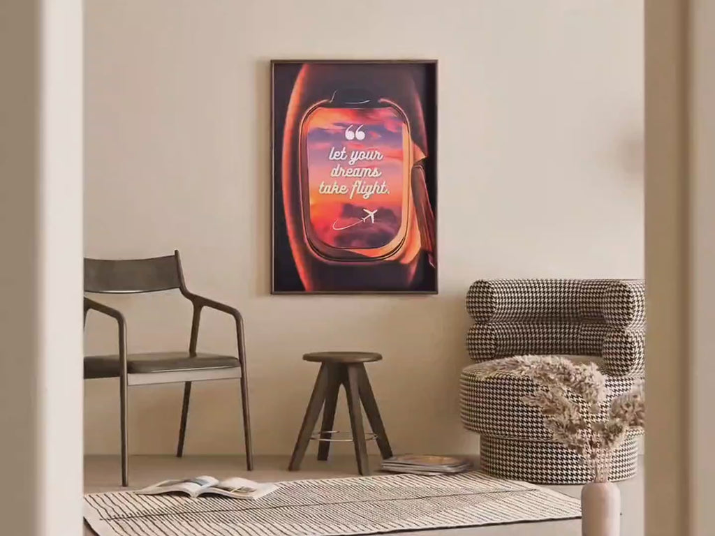 Vuoi aumentare la tua motivazione quotidiana? Questa stampa vision board è ideale per chi sogna in grande. La citazione motivazionale abbinata a un tramonto mozzafiato visto dal finestrino di un aereo ti ricorderà di puntare in alto e di non perdere mai di vista i tuoi obiettivi. Perfetta per visualizzare il successo e mantenere una mentalità positiva, questa stampa è un modo meraviglioso per mettere le tue aspirazioni in primo piano.